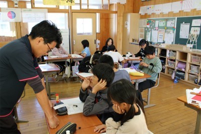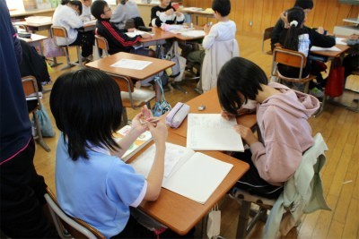6年生 算数 グループやペアになって相談したり、先生に質問したりして学習しています。