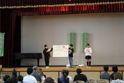 本校6年生3名が境原小学校の魅力や学校よくするための今後の取組について発表しました。