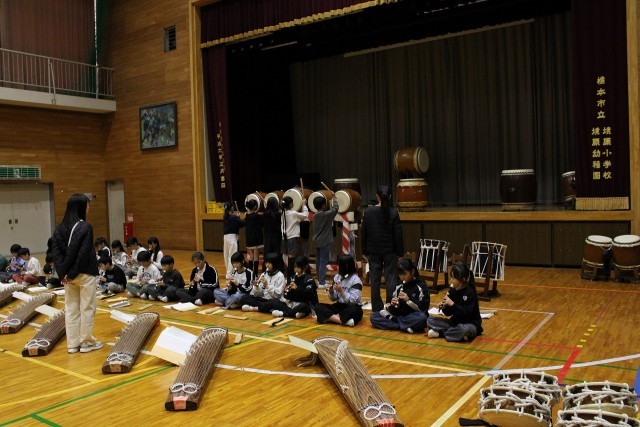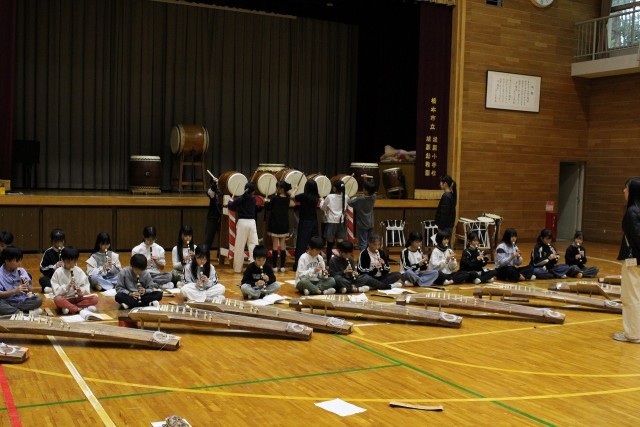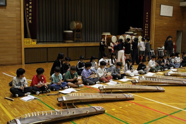 初めて太鼓と箏、リコーダーを合わせました。最初はうまくいかなかったようですが、練習を重ねるごとにどんどんよくなってきました。