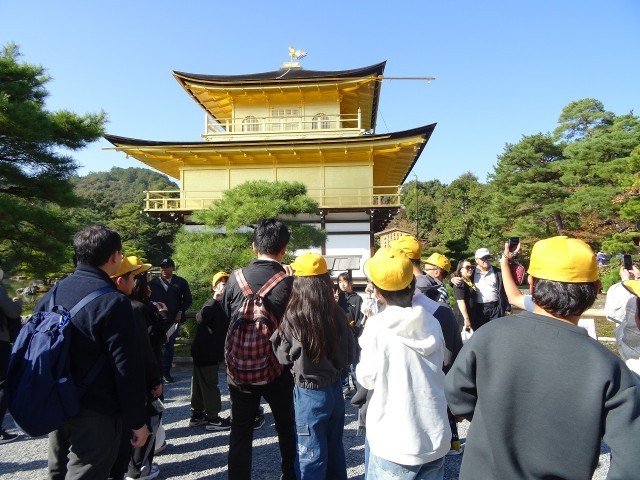 三十三間堂と金閣寺を見学し、観光客の多さと本物のすごさにびっくりしました。