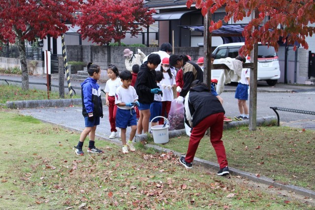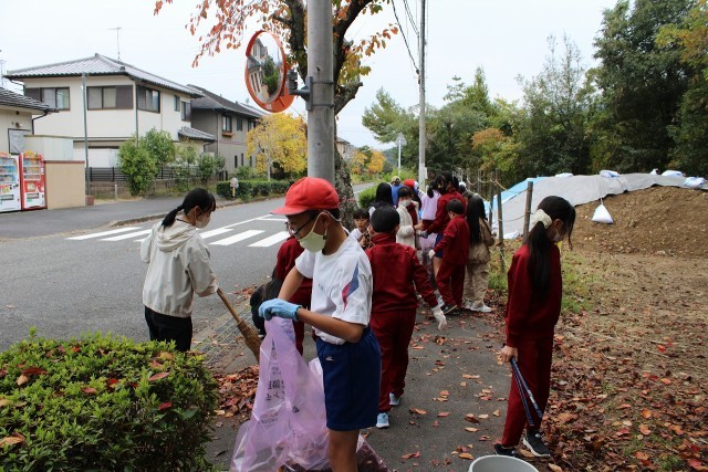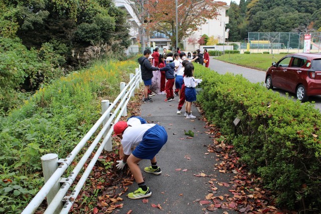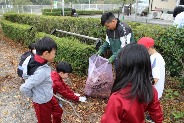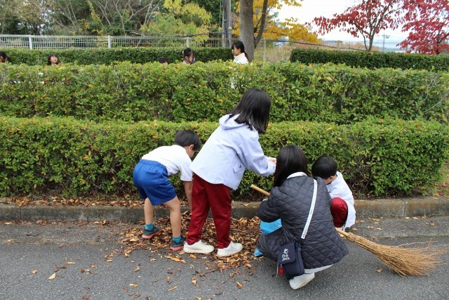 ゴミを拾ったり、たくさんの落ち葉を集めたりしました。子どもたちには、このような活動を通して地域の一員である自覚を高めてほしいと思います。