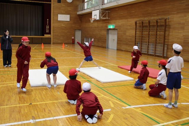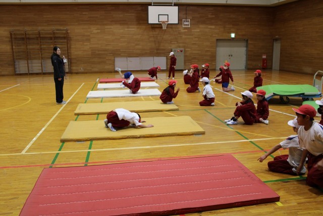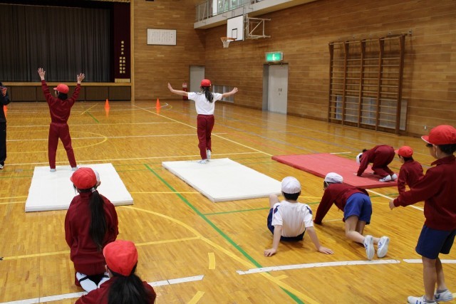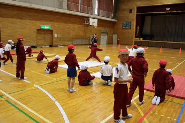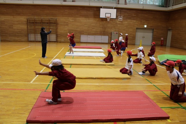 体育館の中は音楽が流れており、子どもたちはリズムよく楽しそうに活動していました。