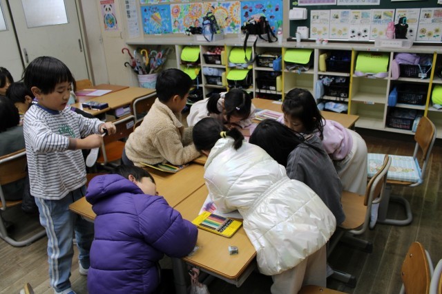 1年生がお兄さんお姉さんとなって新入児を招待します。