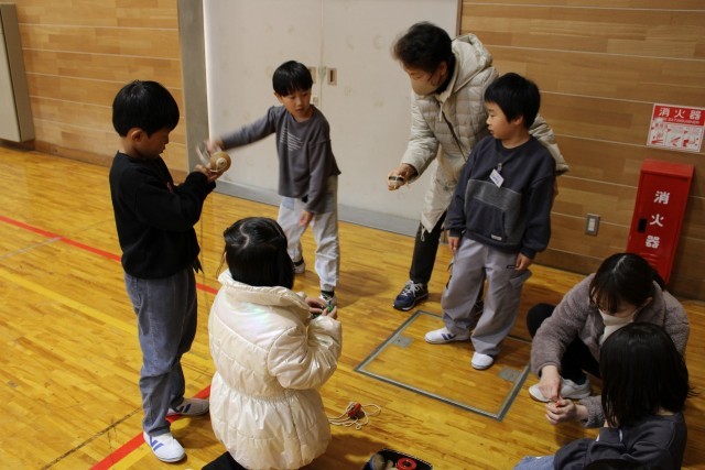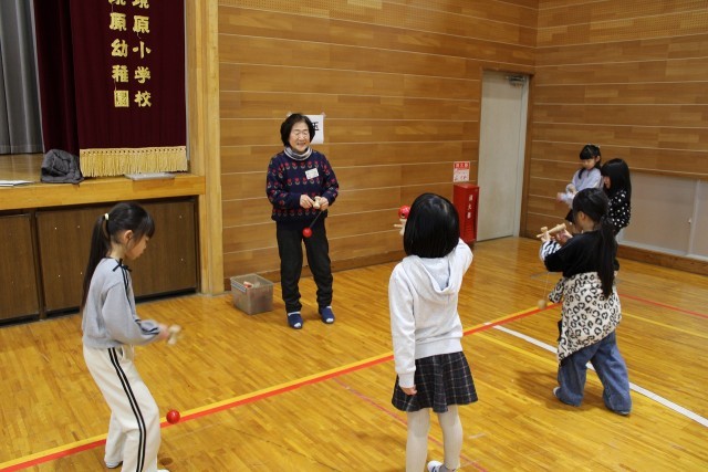1年生は地域の方々と一緒に昔遊びを体験しました。