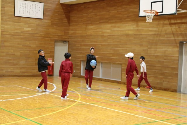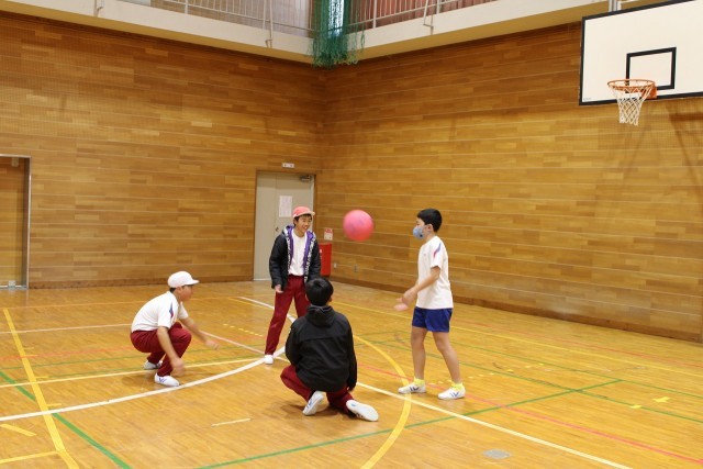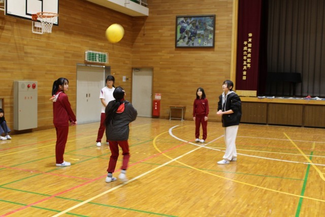 6年生 体育 ソフトバレーボールをみんなで仲良く楽しんでいます。