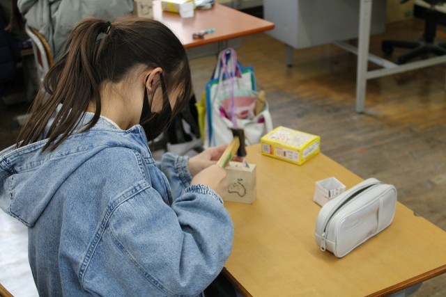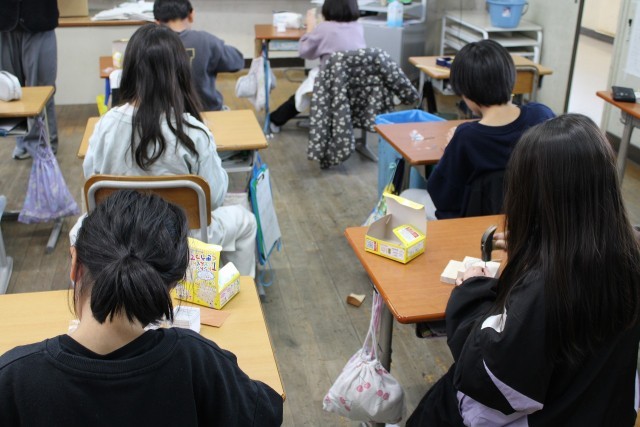 3年生 図工 くぎを打って、いろいろな形をつくっています。