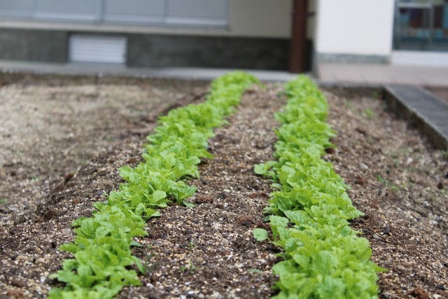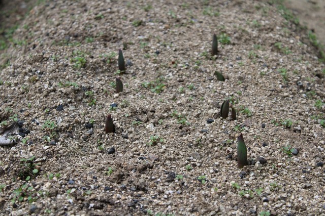昨年の11月7日に植えたチューリップの球根から芽が出てきています。また、菜の花も成長しています。