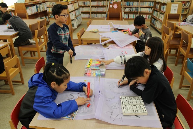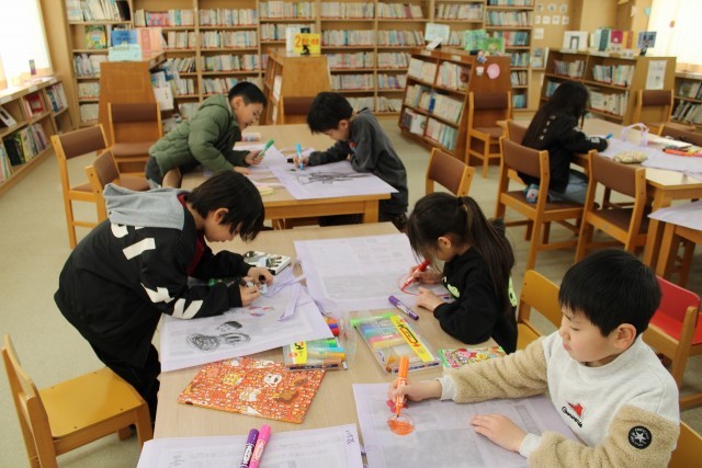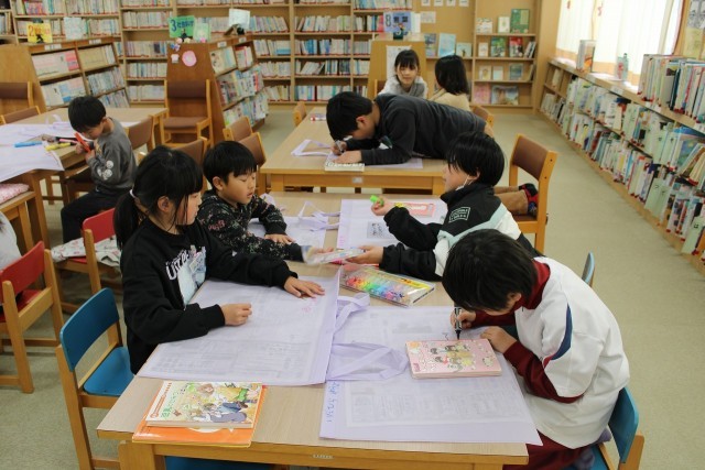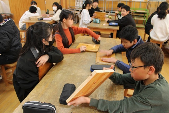 6年生は卒業記念制作に取り組んでいます。2年生は作品袋を作っています。