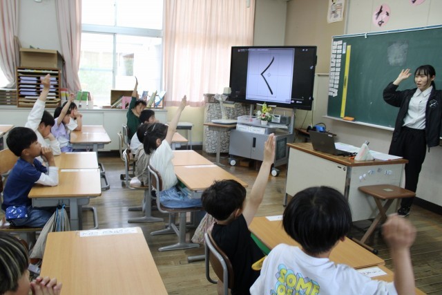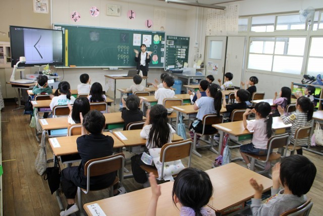 1年生 国語 ひらがなの学習です。『く』のついた言葉を意欲的に発表していました。
