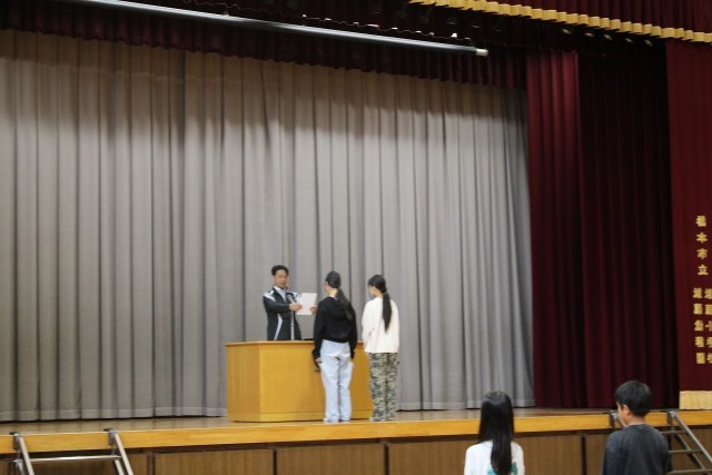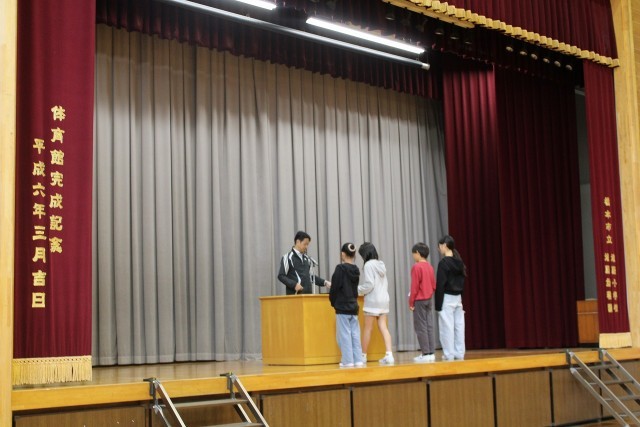1限目の集会で児童会役員、各専門部委員会役員、学級委員の任命をしました。
