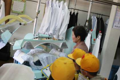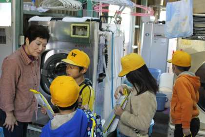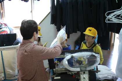 クリーニング店では、袋に入れるのを体験しました。
