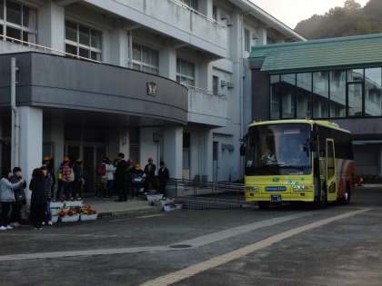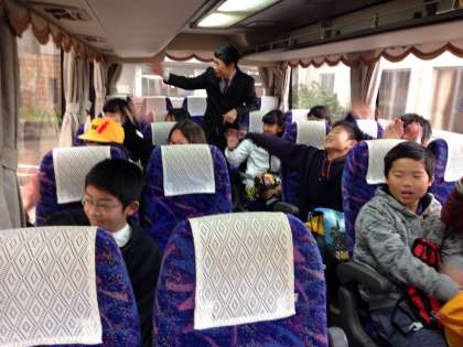 6年生11名、元気に出発しました、心配していた天気も朝霧が出るほどです。晴れてくるのはまちがいなし!今からバスの中は盛り上がっています。