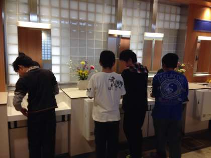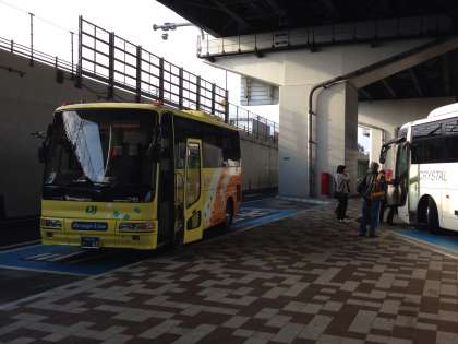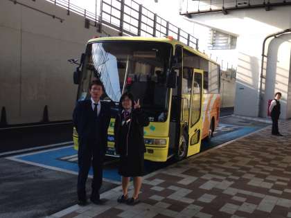 八尾のパーキングでトイレ休憩です。とてもきれいで、男子は感動してました。お世話になるドライバーさんとガイドさんです。