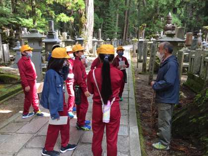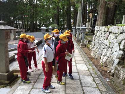 奥の院の一の橋をスタートして、写真カードの物を見つけて歩いています。