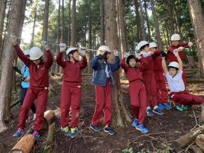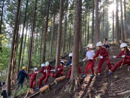 森林体験学習 公開日 2020/10/13 更新日 2020/10/13 学年の行事等 木に巻き付けたロープを引っ張って木を倒します! 斜面なので、みんなで引っ張っても、なかなか倒れません。 運動会の綱引きのように、みんなで声をかけ、気持ちを一つにして引っ張ります。 最後の手段は みんなでロープにぶら下がります! 見事、木が倒れました! いいね(0)