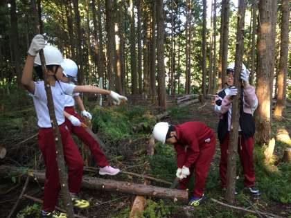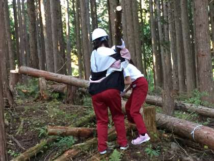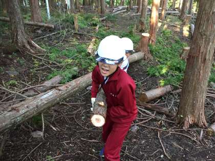倒した木を運べる長さに切って、みんなで運びだしました。