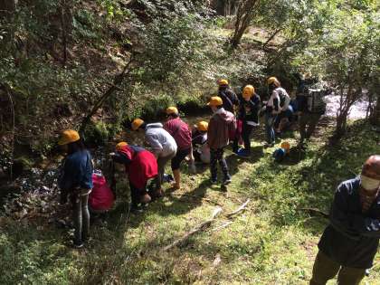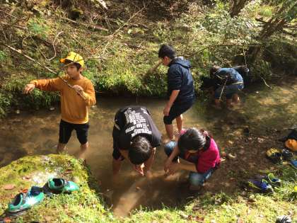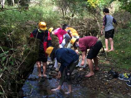 山から沢に降りてきました。子どもたちが楽しみにしていた川遊びです。