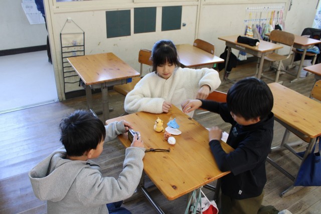 『コマどりアニメ』づくり自分たちで作ったキャラクターをデジカメを使って撮影しました。いろいろな場所で撮影しています。撮影した画像がどんな動きになるのか完成がとても楽しみです。