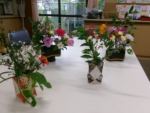学校のいろんな場所に生け花を置いてくれてますよ。