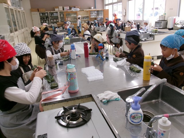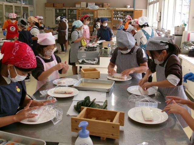 4年生は、柿の葉寿司作りを行いました。