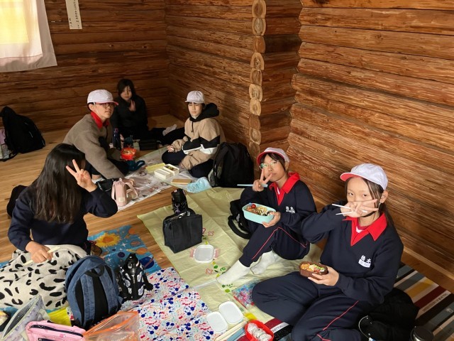 お昼ごはんはコテージでほっこり。おいしくいただきました。