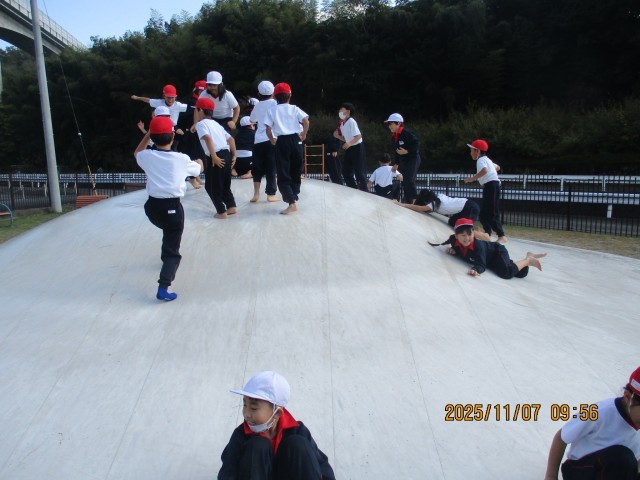 公園に到着してからは、元気いっぱい大はしゃぎ!!大きなトランポリンやすべり台などで思いっきり遊びました。