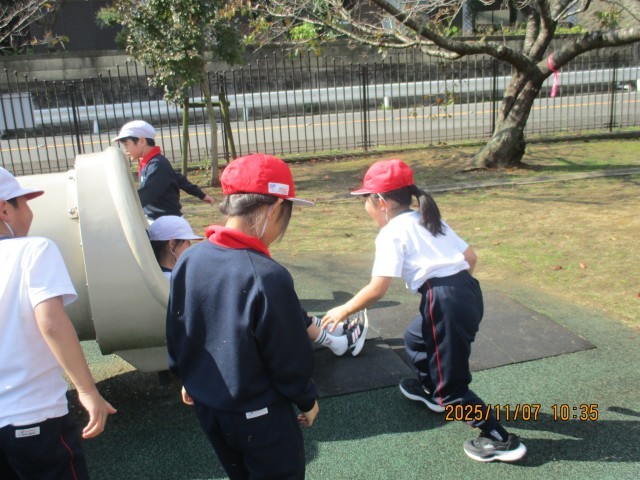 秋の校外学習で2年生は名古曽児童公園(きのこ公園)に行きました。
