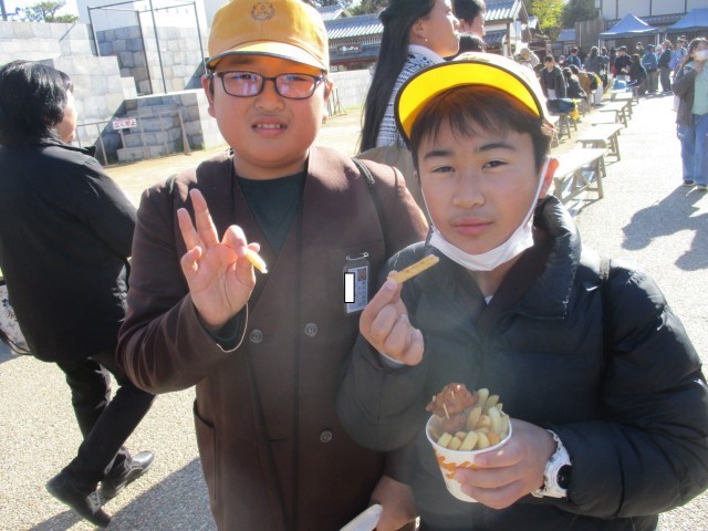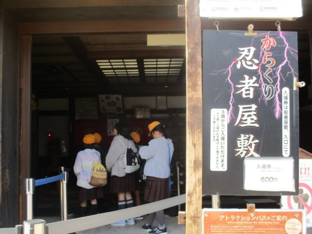 修学旅行の最後には太秦映画村に行きました。アトラクションに入ったり、アイスなどの軽食を楽しんだりと各班思い思いに楽しむことができました。