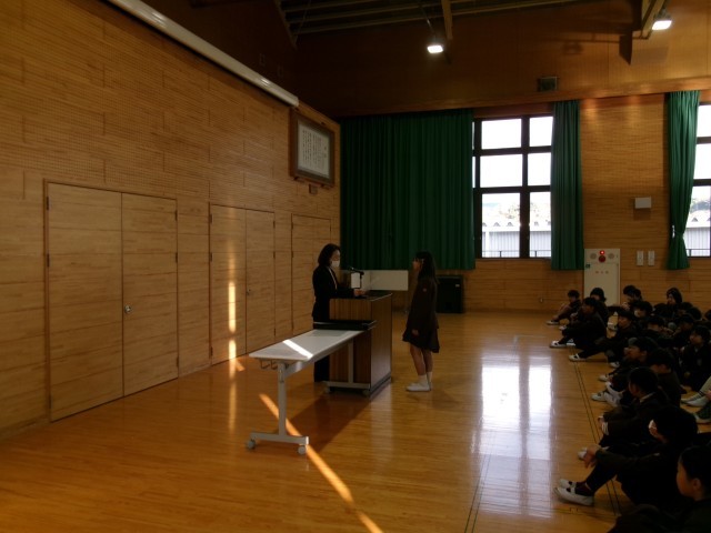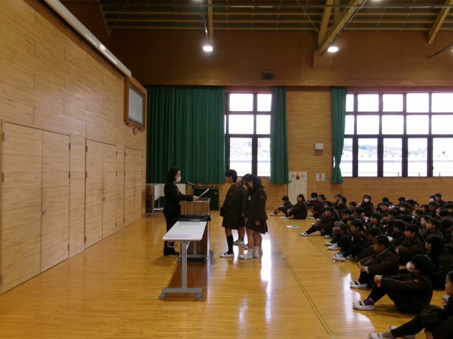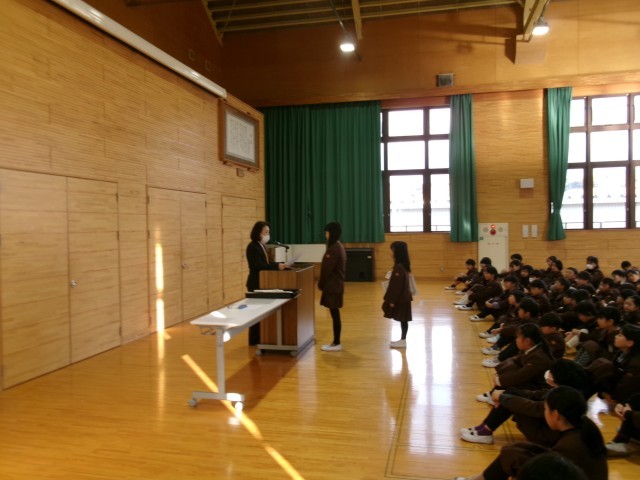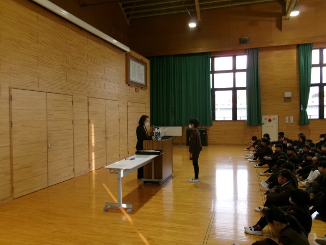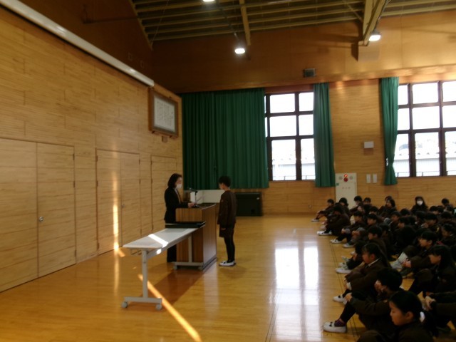 本日の全校集会にて、夏休み前後から子どもたちが取り組んだ作品等の表彰伝達を行いました。