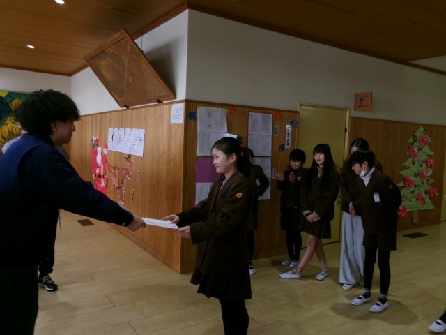 皆さんにご協力いただいた「赤い羽根共同募金」を橋本市社会福祉協議会の方が取りに来てくれました。