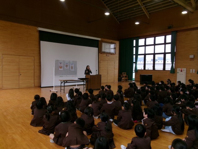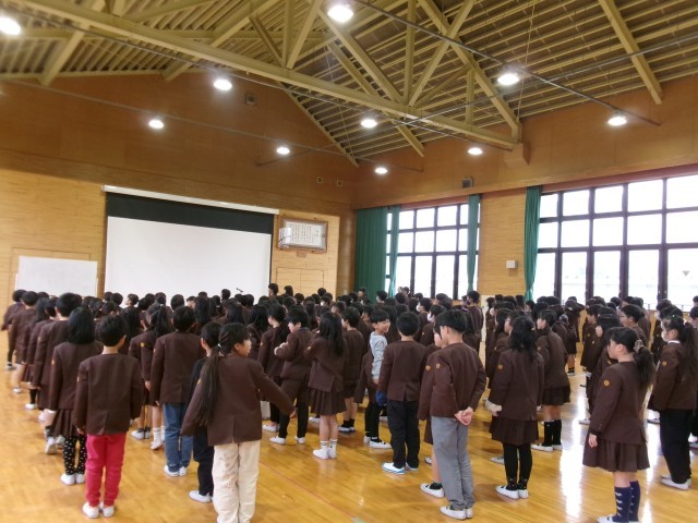 校歌斉唱、マラソン記録会表彰のあと、校長先生からのお話がありました。