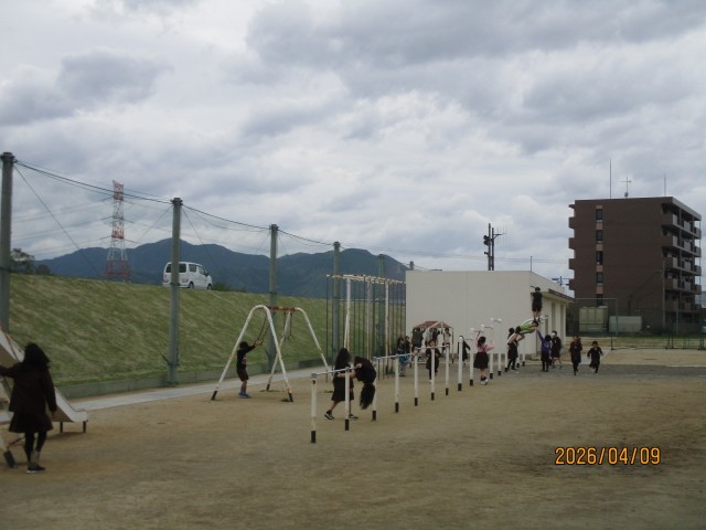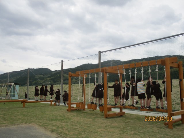 南庭では新しくなった遊具で多くの児童が遊んでいました。
