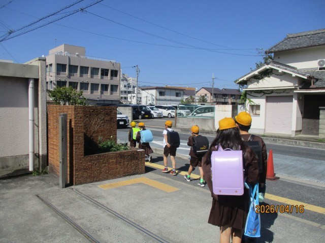 地区子ども会でメンバーの確認や通学路の確認を行ったあと、1年生を迎えて初めての集団下校を行いました。