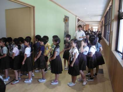 その後、青少年センターの方に、不審者を見分ける『はちみつじまん』や不審者から逃げるための『いかのおすし』について教わりました。とても真剣に聞いていました。また、ご家庭でも団欒の一コマに取り上げ、尋ねてあげてくださいね。明日から始まる夏休み、安全に過ごしてくれるようにと願っています。