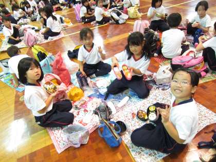 おうちの人が朝早くから作ってくれたお弁当。とってもかわいくて、おいしそうでした。
