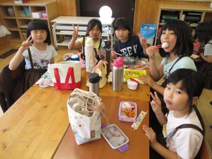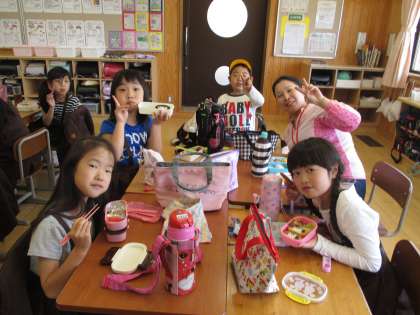 昨日予定通り校外学習が行われたため、今日は予備日でお弁当日でした。1時間目からそわそわして、待ちきれない子も多かったです。