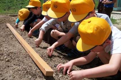 生活科『ひとつぶのたねから』でひまわりの種を植えました。種を見て「うわあ、小さい!」と驚いた様子でしたが、ひとつひとつ丁寧に植えることができました。大輪のひまわりが咲きますように。