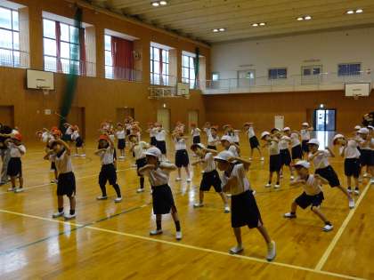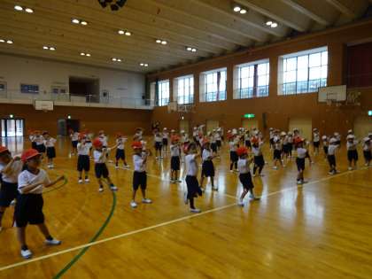 いよいよ運動会の練習が始まり、今日はダンスの練習をしました。少し難しいところもありますが、カウントや笛の合図を聞きながらとっても上手にできました。