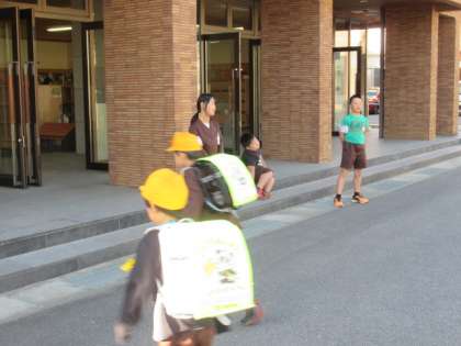6年生の役員が陸上記録会の朝練のため、5年生2人でやってくれていました。