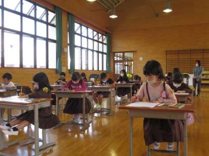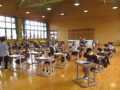 自分の名前を書いてくれてある椅子にきちんと座って、先生のお話を聞いていました。