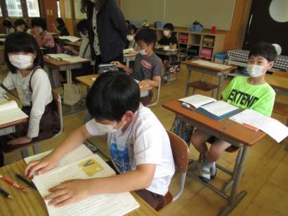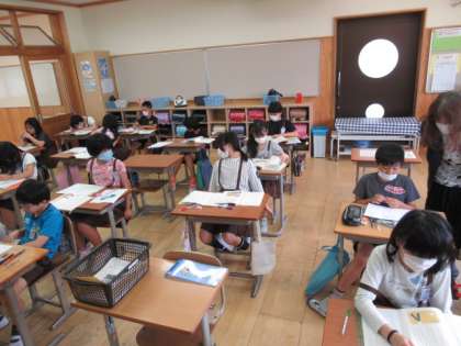 白いぼうしを読んで、不思議に思ったことを書いていました。みんなよく読んでいたようで、一生懸命書いていました。