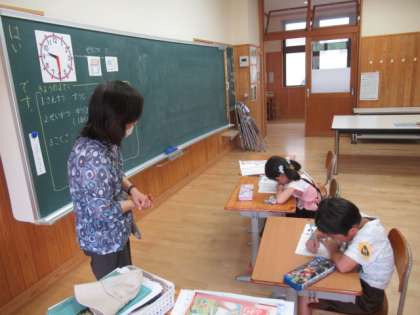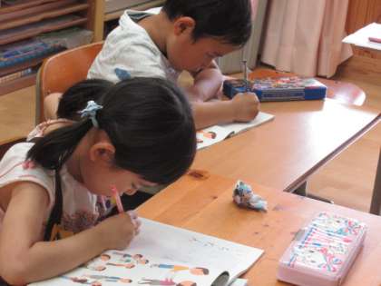 「いちねんせい」と「じぶんのなまえ」を書いていました。