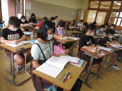 ドリルの答え合わせをしています。自分で合わしたり、責任を持って友達のノートを見たりと、答え合わせでも、大きな力が付きます。