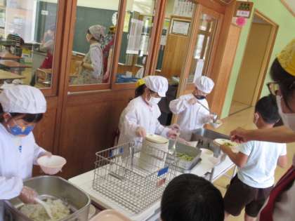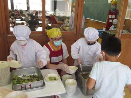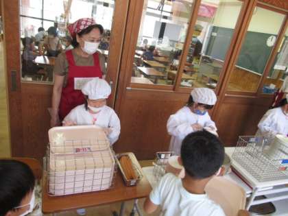 エプロン先生に見守ってもらって、テキパキ盛り付けることができていました。