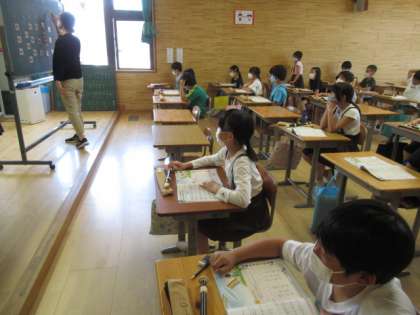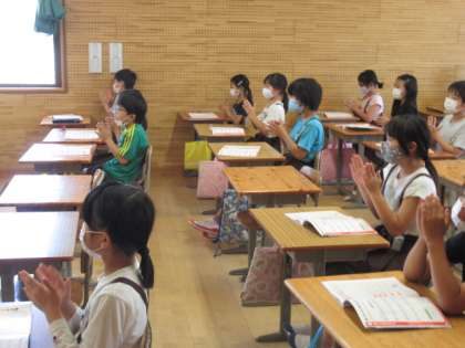 リズム打ちをしていました。自分が選んだ方のリズムを手で打ちます。リレーのように前の子が終わったらすぐ次の子が打っていたのでリズムが繋がり、心地よく響いてきました。