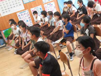 新しいALTの先生と初めての授業です。みんなリズムに乗って、しっかり発音できていました。