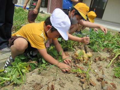 じゃがいもをきずつけないように、優しく手で土を分けて掘り出す子もいました。