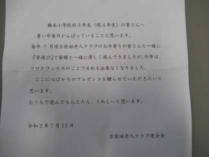 「昨年度、コロナ感染症防止のため実施できなかったので」と、本日手作りおもちゃを届けてくれました。