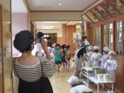 PTA婦人部の活動として、本年度は給食試食会に替えて、給食の様子を見てHPで配信することになりました。お忙しい中、6名の部員さんが来てくれました。