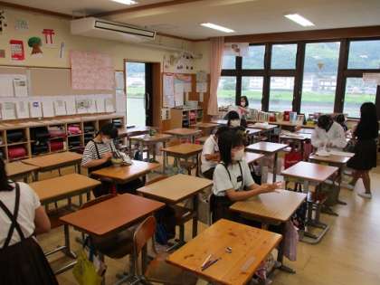 当番以外の人は、呼ばれる前に並ぶと密になるので、呼ばれるまでは教室で静かに待っています。